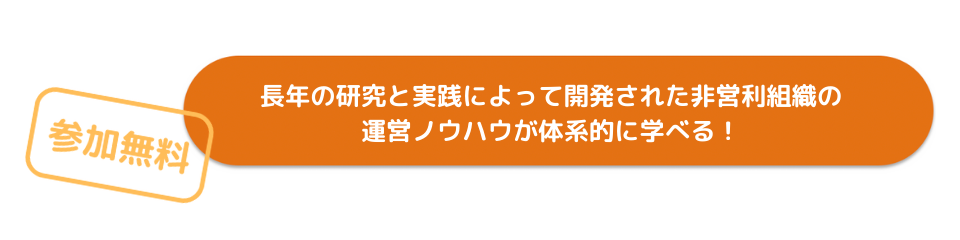 NPO・市民活動・地域活動などの非営利組織・コミュニティを運営するために必要なマネジメントのすべてを学ぶことができる連続講座です。