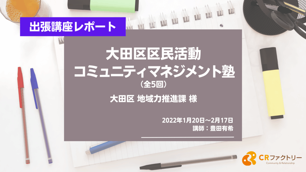 東京都の大田区 地域力推進課様よりご依頼いただき「大田区区民活動コミュニティマネジメント塾」(全5回)を実施しました。