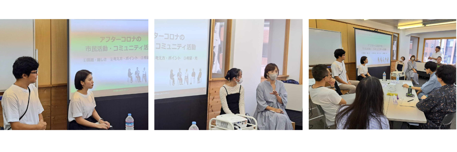 「アフターコロナの市民活動・コミュニティ活動」をテーマに、参加者の中から4名に登壇いただき、トークセッションを行いました。