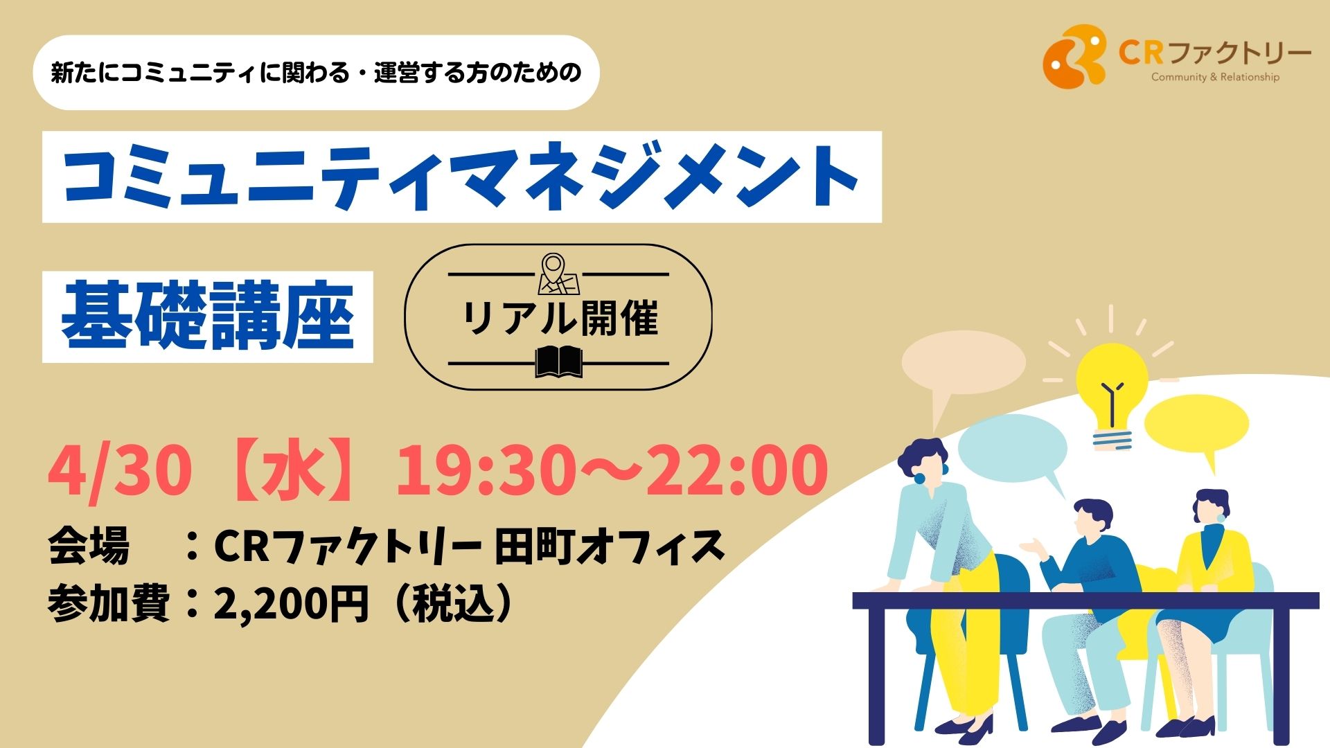 【4/30(水)開催@東京•田町】コミュニティマネジメント基礎講座 〜楽しくてみんながイキイキするコミュニティの運営方法〜