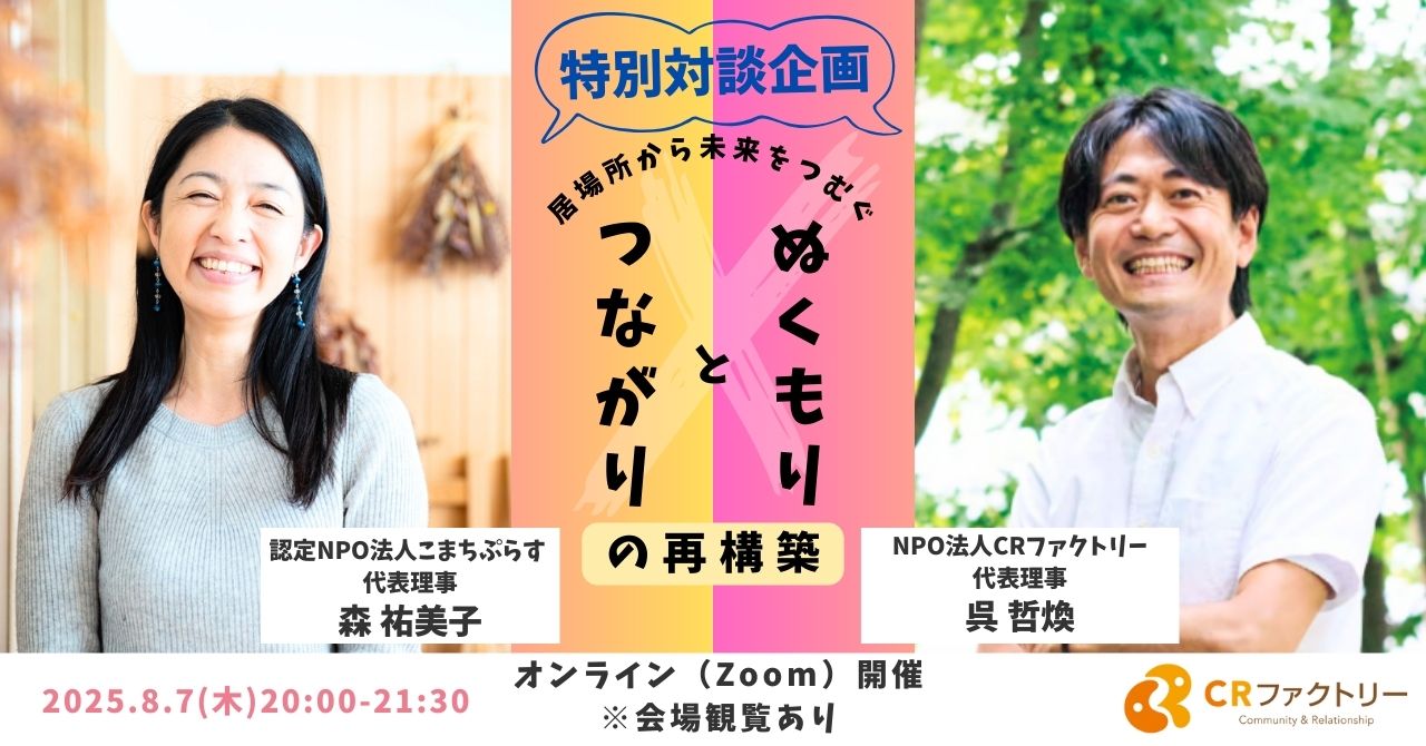「コミュニティ」と「つながり」の価値が、これまで以上に注目されている今──そんな時代の潮流を、こまちぷらすの森祐美子さんとCRファクトリーの呉哲煥がトークイベントで深掘りしていきます。