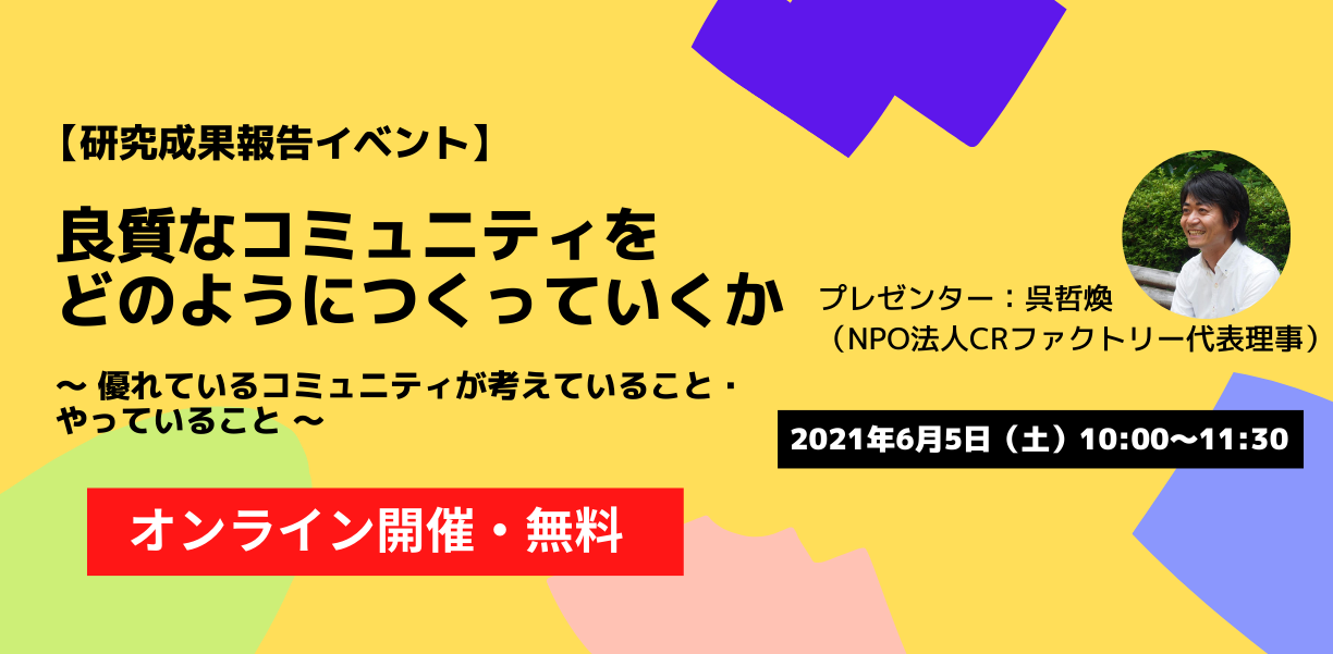 【オンライン開催・無料】研究成果報告イベント:良質なコミュニティをどのようにつくっていくか 〜優れているコミュニティが考えていること・やっていること〜