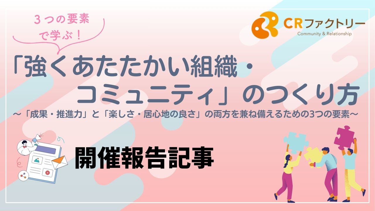 【開催報告】「強くあたたかい組織・コミュニティ」のつくり方〜”成果・推進力”と”楽しさ・居心地の良さ”の両方を兼ね備えるための3つの要素〜