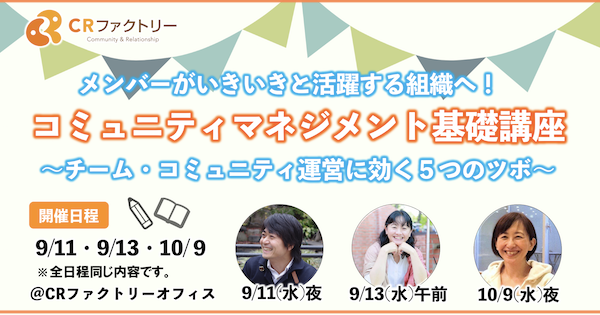 【一から運営方法の基礎を学びたい!】「コミュニティマネジメント基礎講座」〜チーム・コミュニティ運営に効く5つのツボ〜