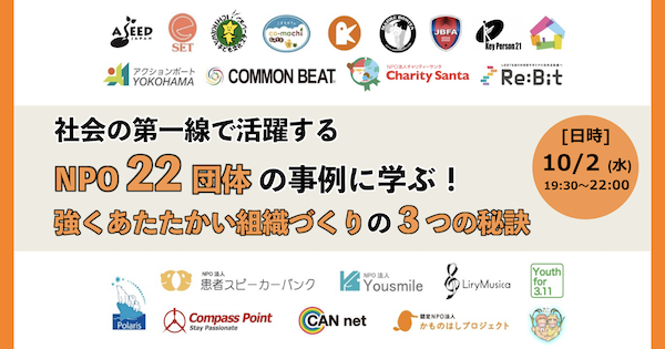 【他団体の施策・ノウハウから学びたい!】第一線で活躍する 「NPO22団体」に学ぶ! 強くあたたかい組織づくりの3つの秘訣