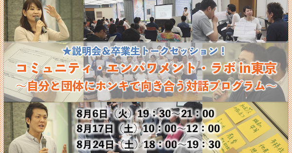 ★日程追加(8/6,17,24)★自分と団体にホンキで向き合う対話プログラム/「コミュニティ・エンパワメント・ラボin東京」説明会&卒業生トークセッション