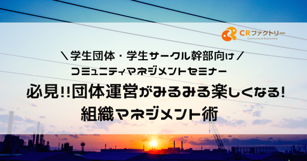 【学生団体・学生サークル幹部向けコミュニティマネジメントセミナー】 必見!団体運営がみるみる楽しくなる組織マネジメント術