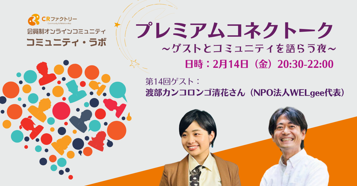 【コミュニティ・ラボ】プレミアムコネクトーク~ゲストとコミュニティを語らう夜~ 第14回 ゲスト:渡部カンコロンゴ清花さん(NPO法人WELgee代表)