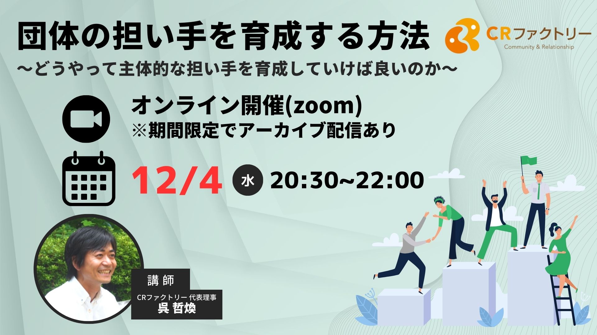 【12/4開催オンライン講座】団体の担い手を育成する方法~どうやって主体的な担い手を育成していけば良いのか~
