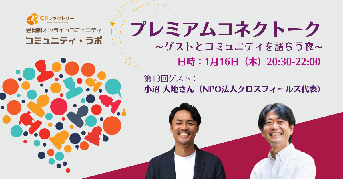 【コミュニティ・ラボ】~ゲストとコミュニティを語らう夜~ 第13回 ゲスト:小沼大地さん(NPO法人クロスフィールズ代表)