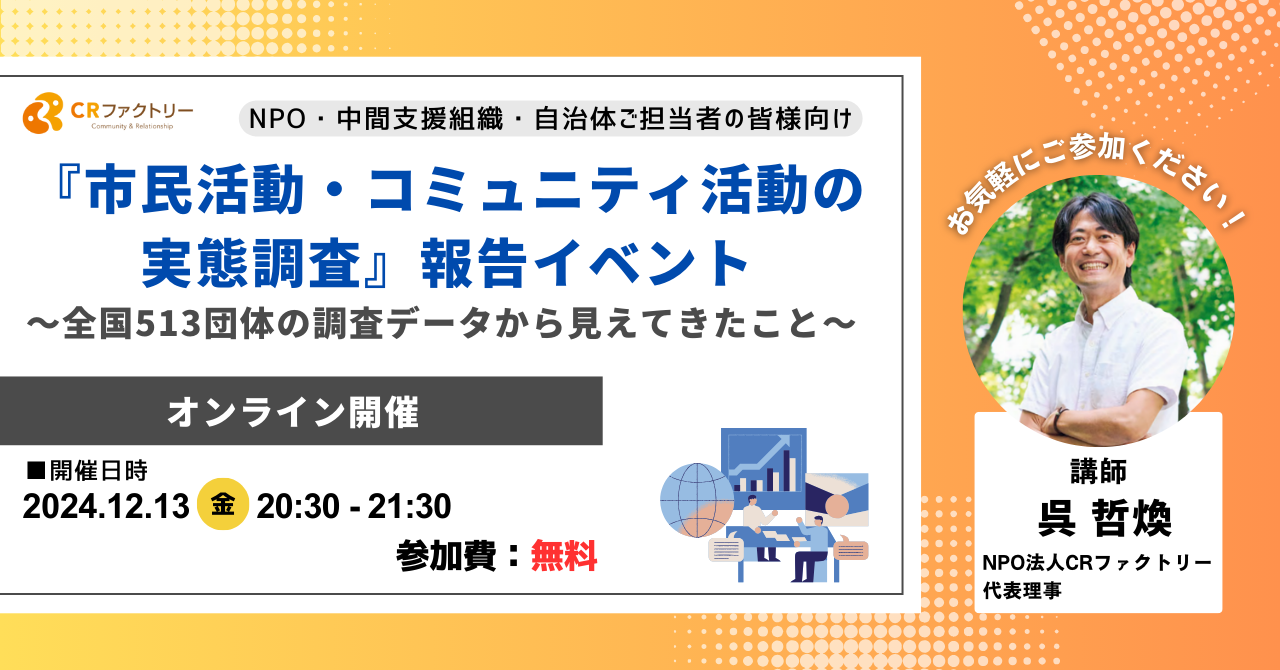 「市民活動・コミュニティ活動の実態調査」報告イベント 〜全国513団体の調査データから見えてきたこと〜