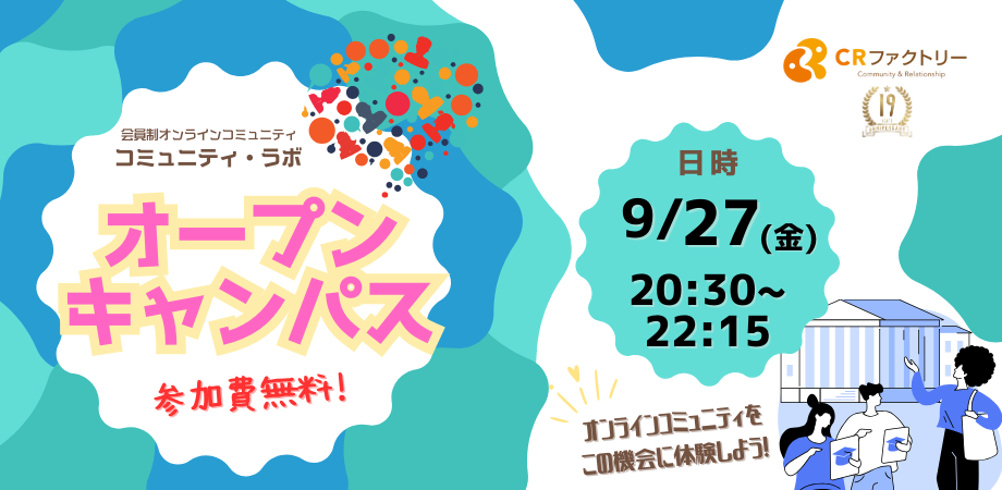 【9/27開催@オンライン・参加費無料】「コミュニティ・ラボ」オープンキャンパス | CRファクトリーのオンラインコミュニティ活動を見学・体験いただけます!