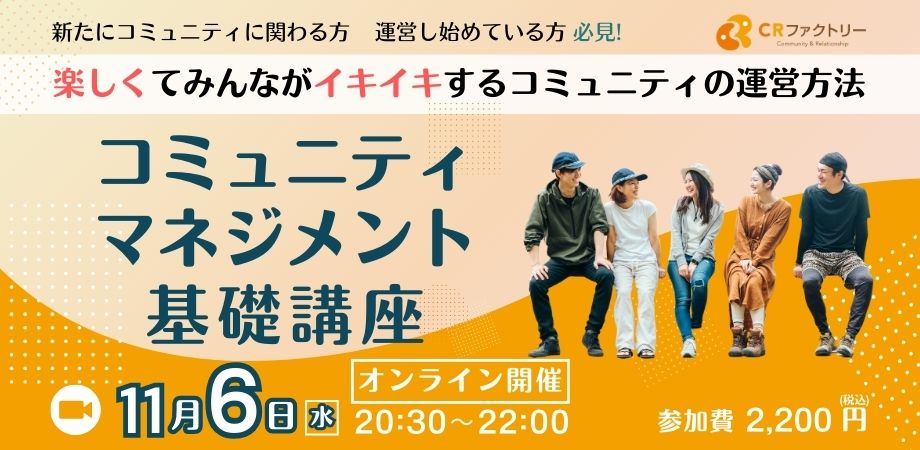 【11/6開催@オンライン】コミュニティマネジメント基礎講座 〜楽しくてみんながイキイキするコミュニティの運営方法〜