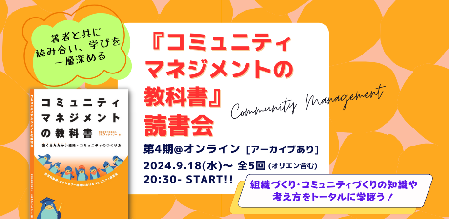 『コミュニティマネジメントの教科書』読書会 ~ 組織づくり・コミュニティづくりの知識や考え方をトータルに学ぼう!